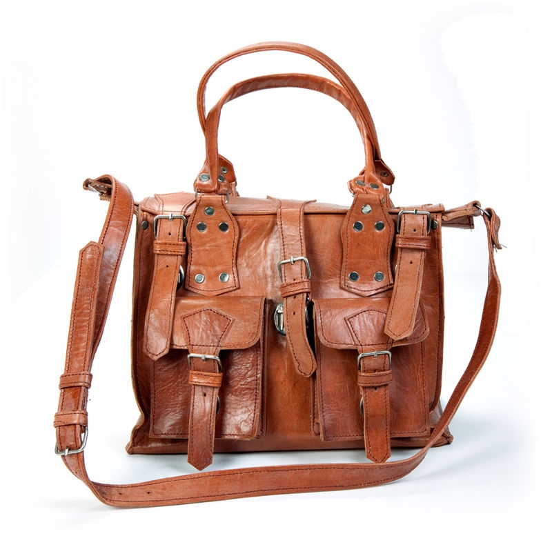 Zeer mooie, stoere met de hand gemaakte tas. Door alle handige vakjes heb je nog meer ruimte om alles altijd bij de hand te hebben. De vakken zijn afsluitbaar met stoere clips. Deze tas is marron van kleur. Afmeting 22x30cm.